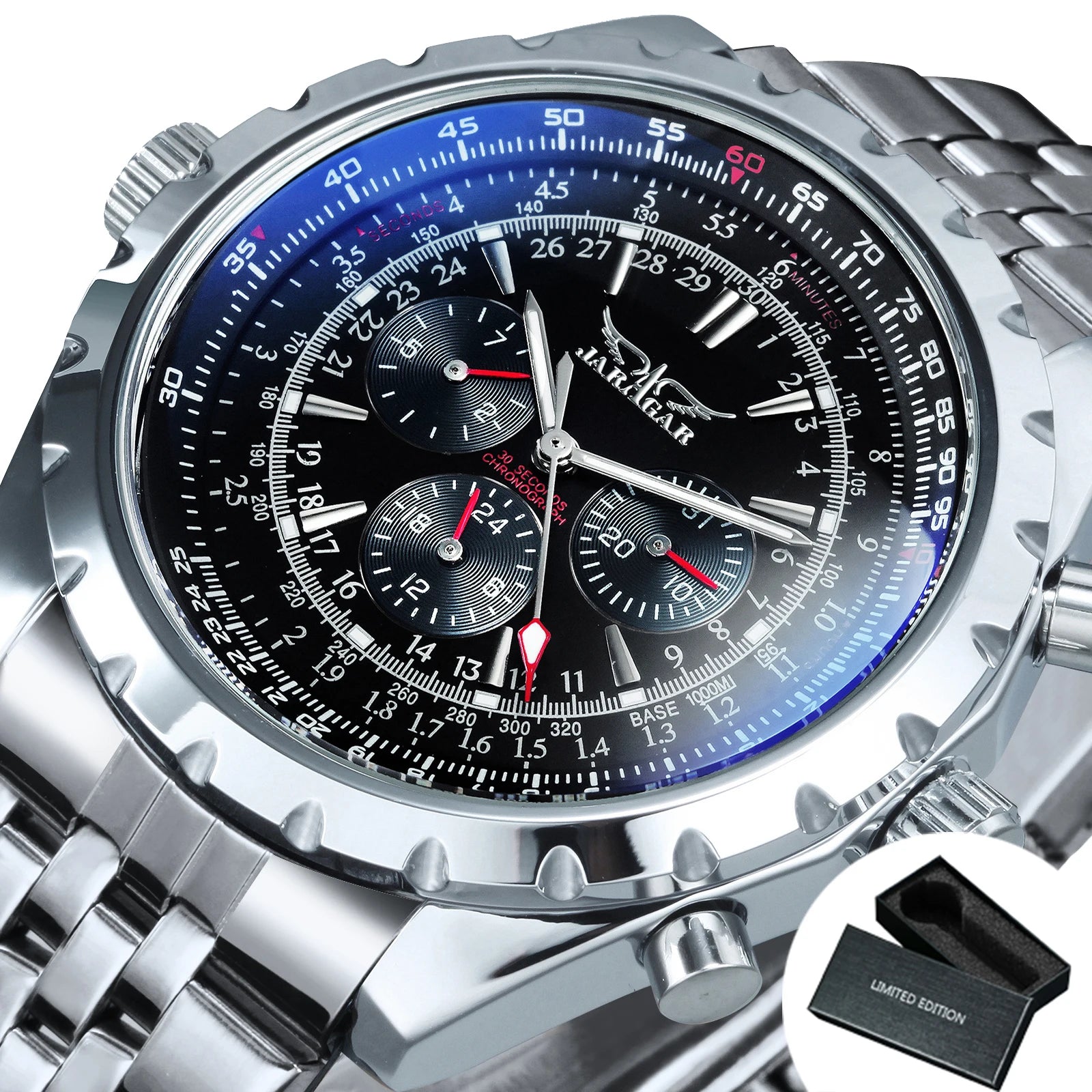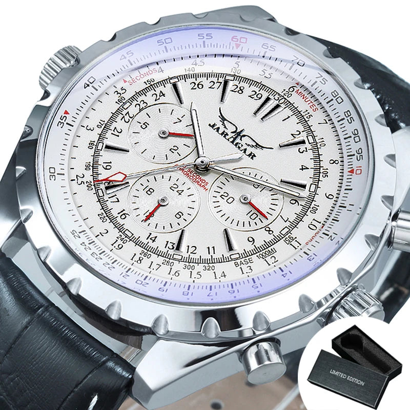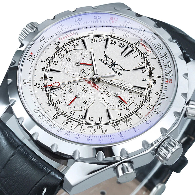 Mechanical Watch for Men Multifunctional Small Dials Leather Steel Strap